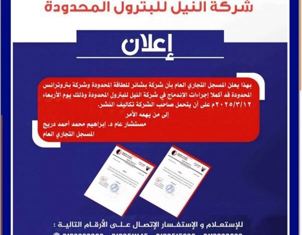 اعلان مهم من شركة النيل للبترول المحدودة
