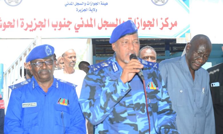 المدير العام لقوات الشرطة يفتتح مركز الجوازات والسجل المدنى بجنوب الجزيرة مدينة الحوش