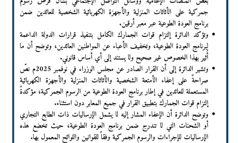 الرئيسية|أخبار|توضيح صحفي من رئاسة قوات الجمارك أخبار توضيح صحفي من رئاسة قوات الجمارك العلا برس فبراير 8, 20260 69 أقل من دقيقة نسخ الرابط تم نسخ الرابط فبراير 8, 20260 69 أقل من دقيقة فيسبوك X ماسنجر ماسنجر واتساب تيلقرام مشاركة عبر البريد