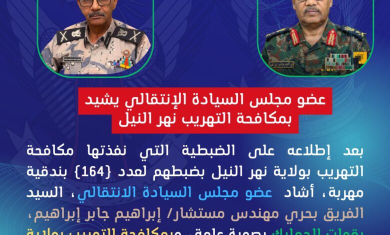 عضو مجلس السيادة الإنتقالي يشيد بمكافحة التهريب نهر النيل