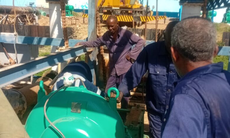 اعلنت هيئة مياه ولاية عن تركيب (6 ) طلمبات ساحبه جديدة بمأخذ المحطة ( ب) بمحطة مياه بحري سعة الطلمبه الواحده( 1250) متر مكعب في الساعة