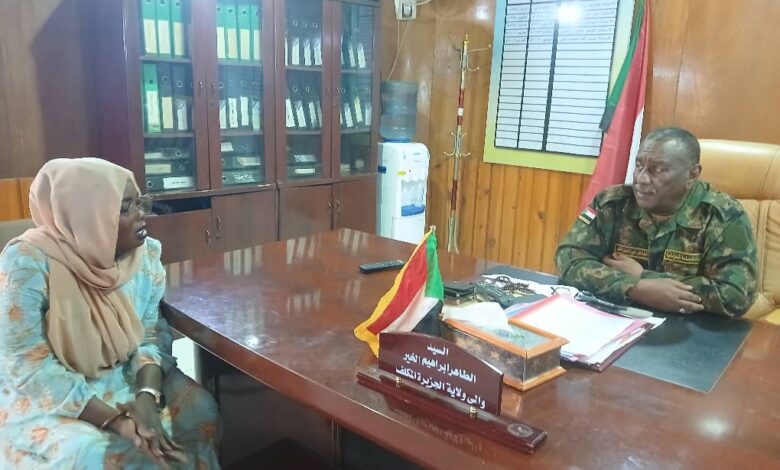 بحث والي ولاية الجزيرة الطاهر ابراهيم الخير بمكتبه صباح اليوم بمدينة المناقل العاصمة الإدارية للولاية تطوير وترقية العمل الصحي بمحلية القرشي.