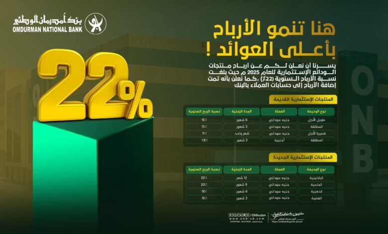 أعلن بنك أم درمان الوطني عن تحقيق أعلى معدلات عائد لارباح الودائع الاستثمارية بالعملة المحلية للعام 2025 م… حيث…